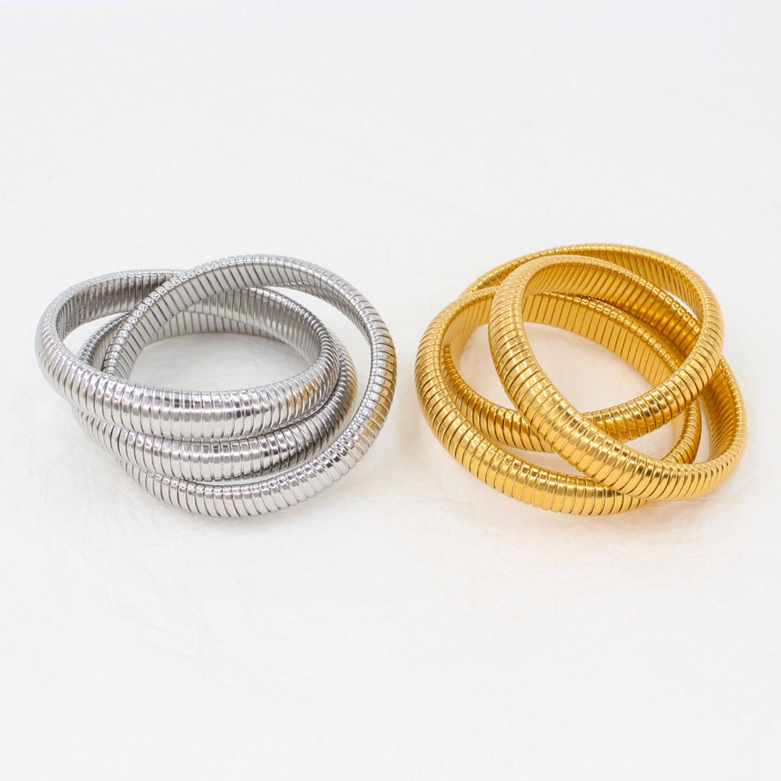 These stunning intertwined kadas are the perfect fusion of sophistication and modern flair. Crafted with [material] for a luxurious look, they boast a unique design that effortlessly blends [number] bangles into one statement piece.